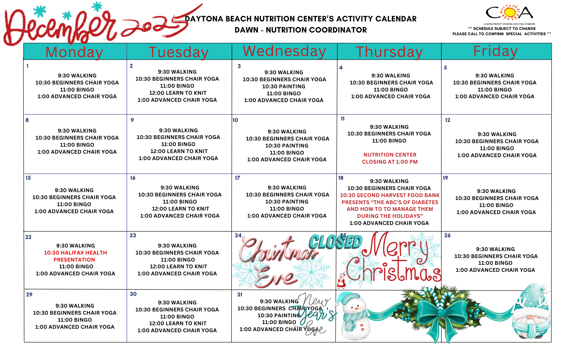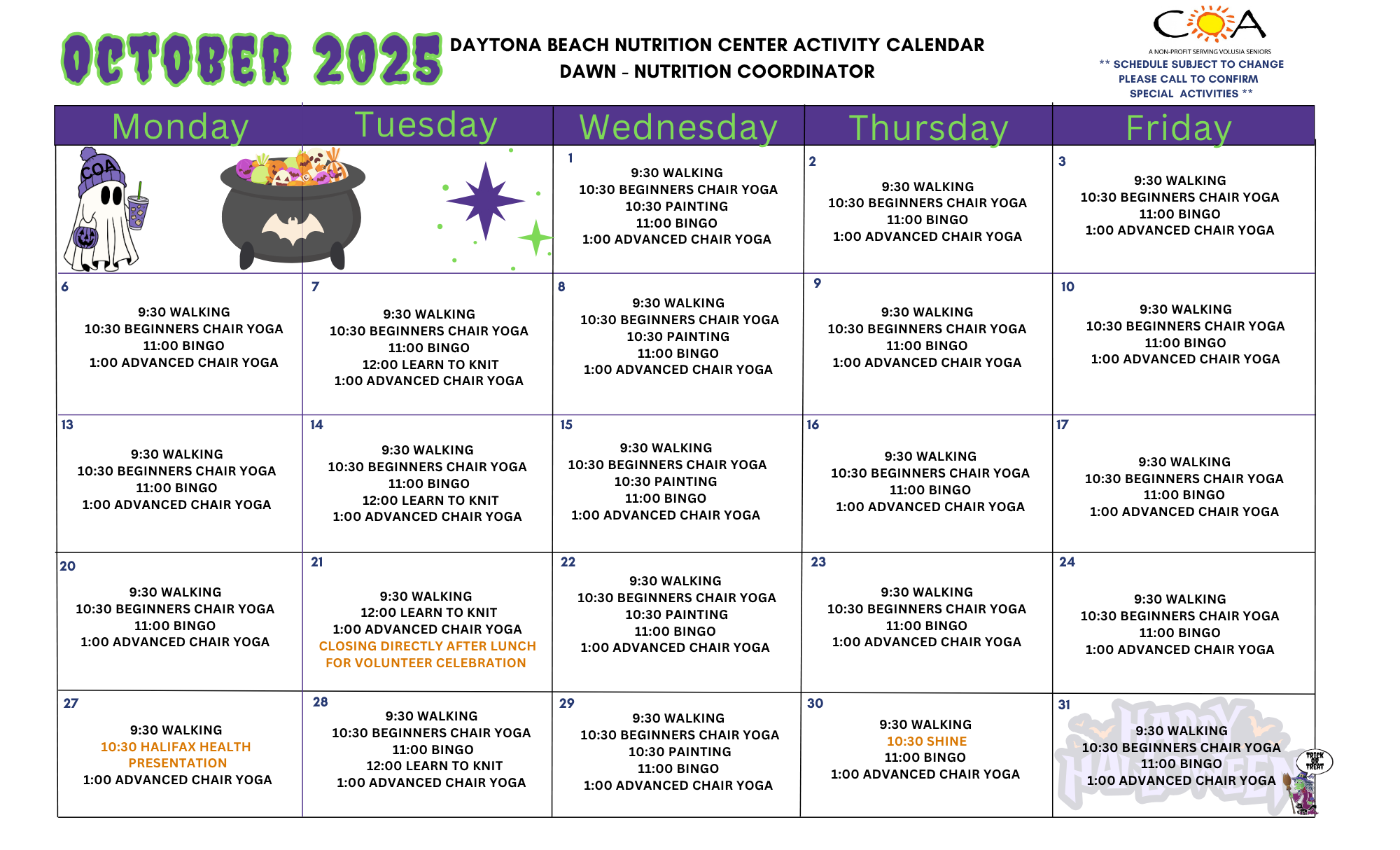 COA Daytona Beach Neighborhood Nutrition Center Calendar