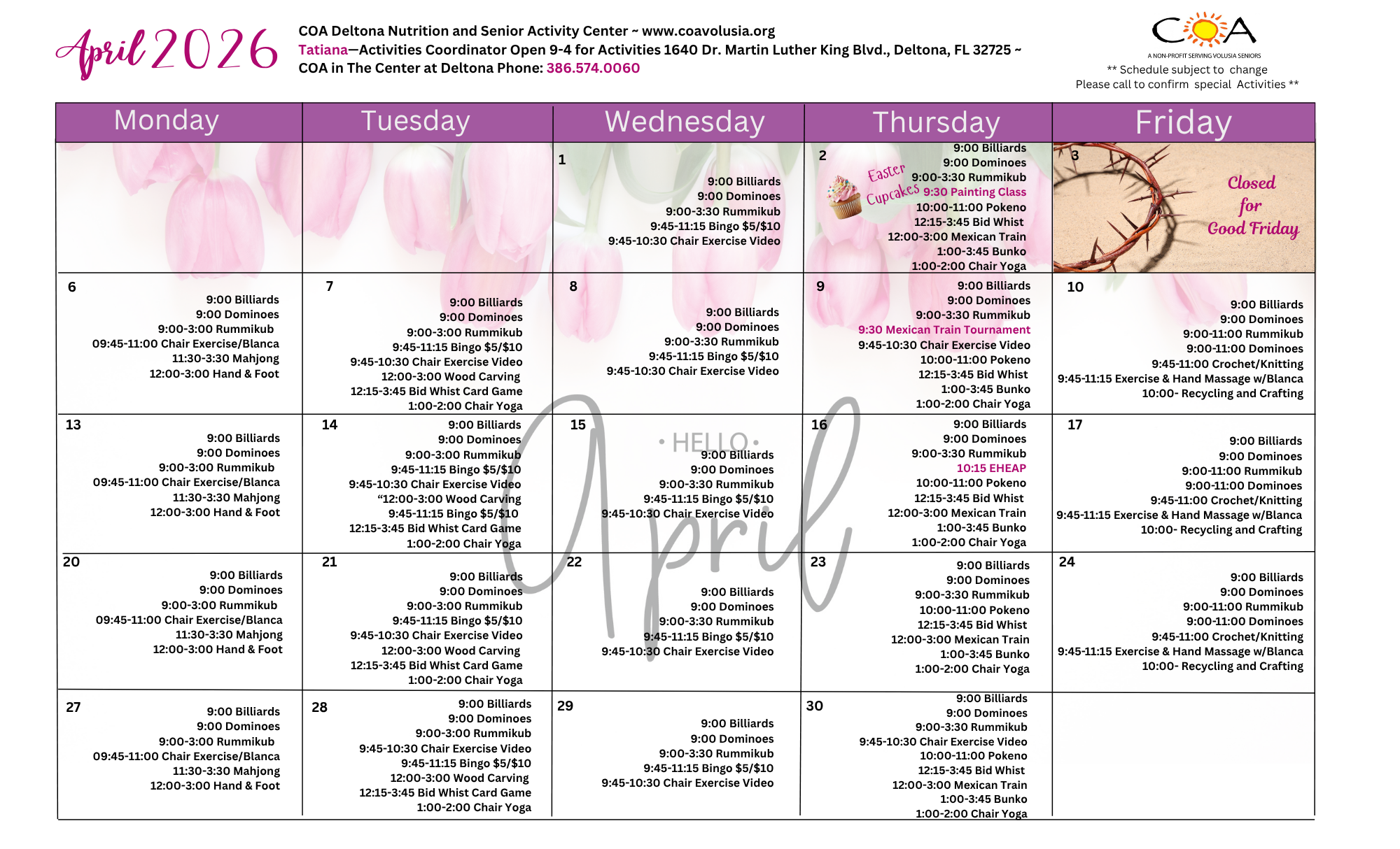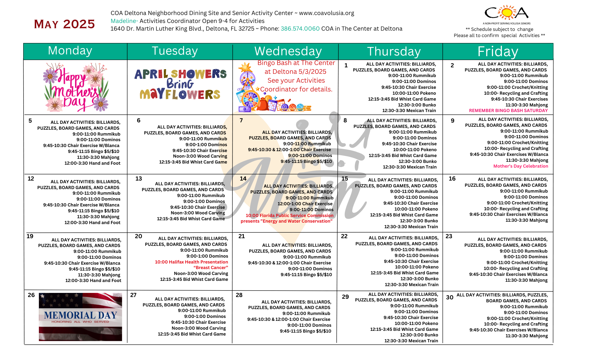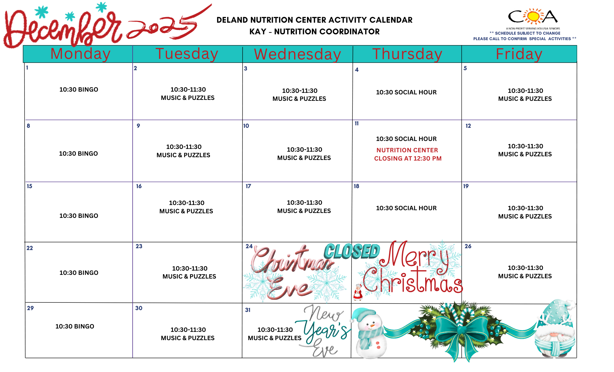 COA Deltona Senior Center & Neighborhood Nutrition Center Calendar