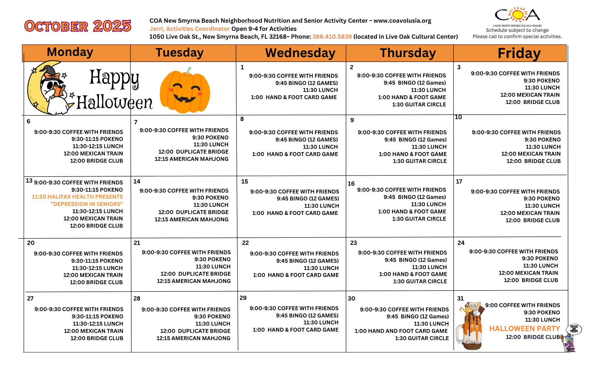 COA New Smyrna Beach Senior Center & Neighborhood Nutrition Center Calendar