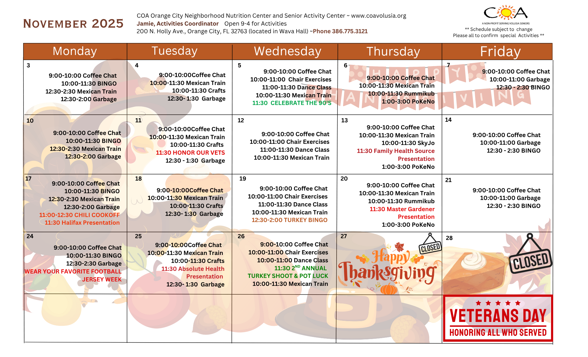 COA Orange City Senior Center & Neighborhood Nutrition Center Calendar