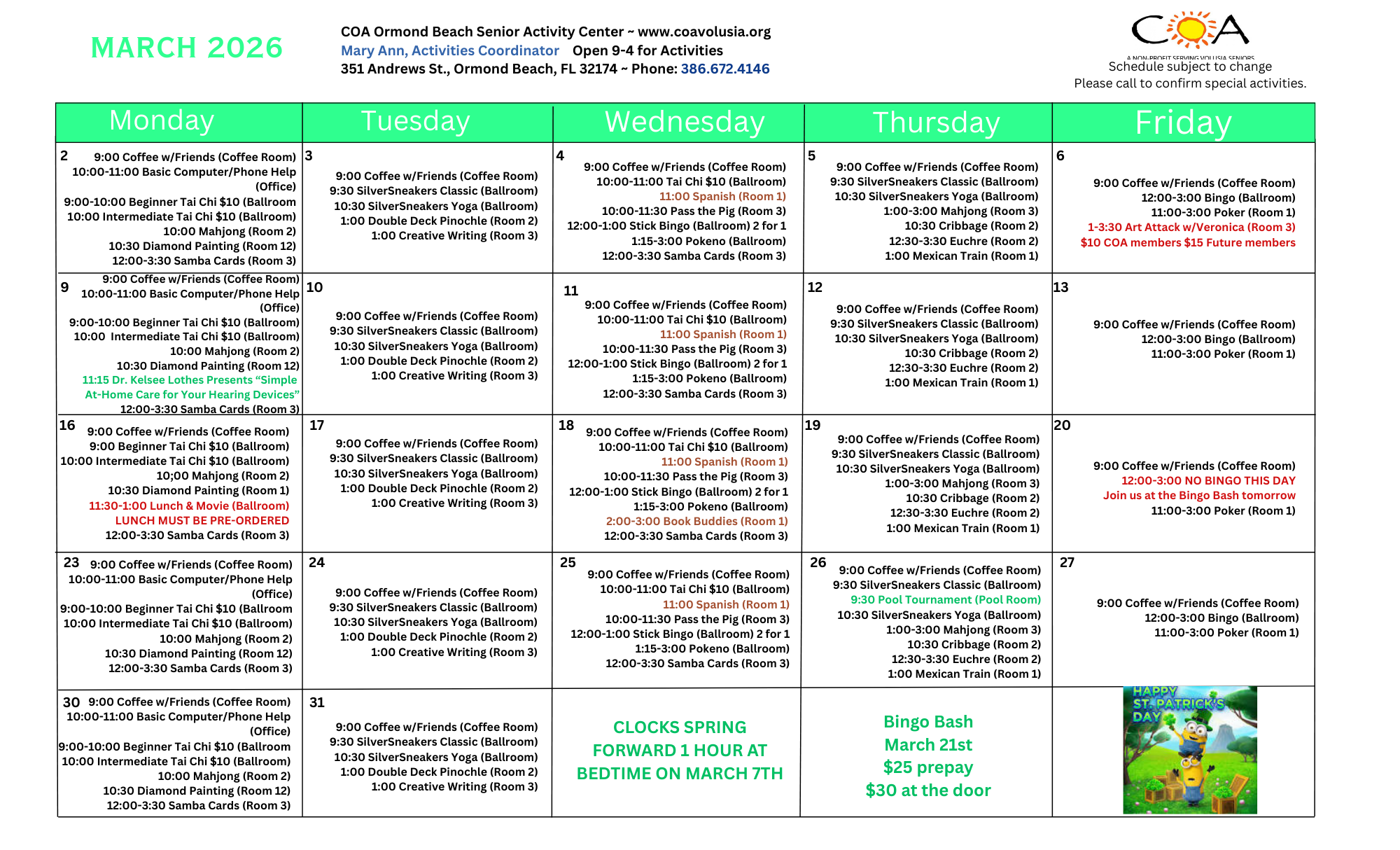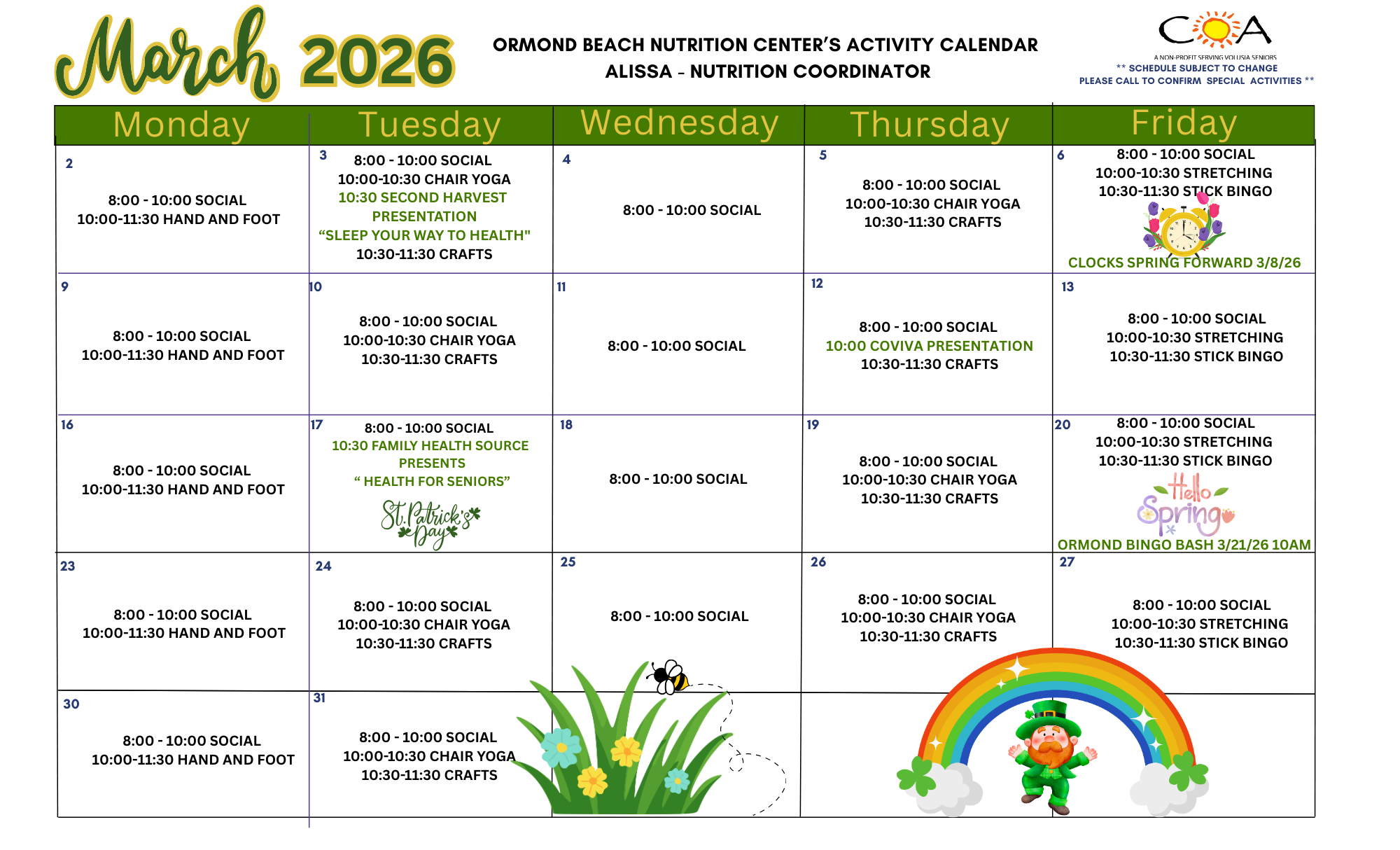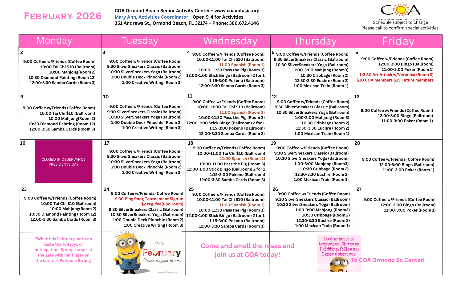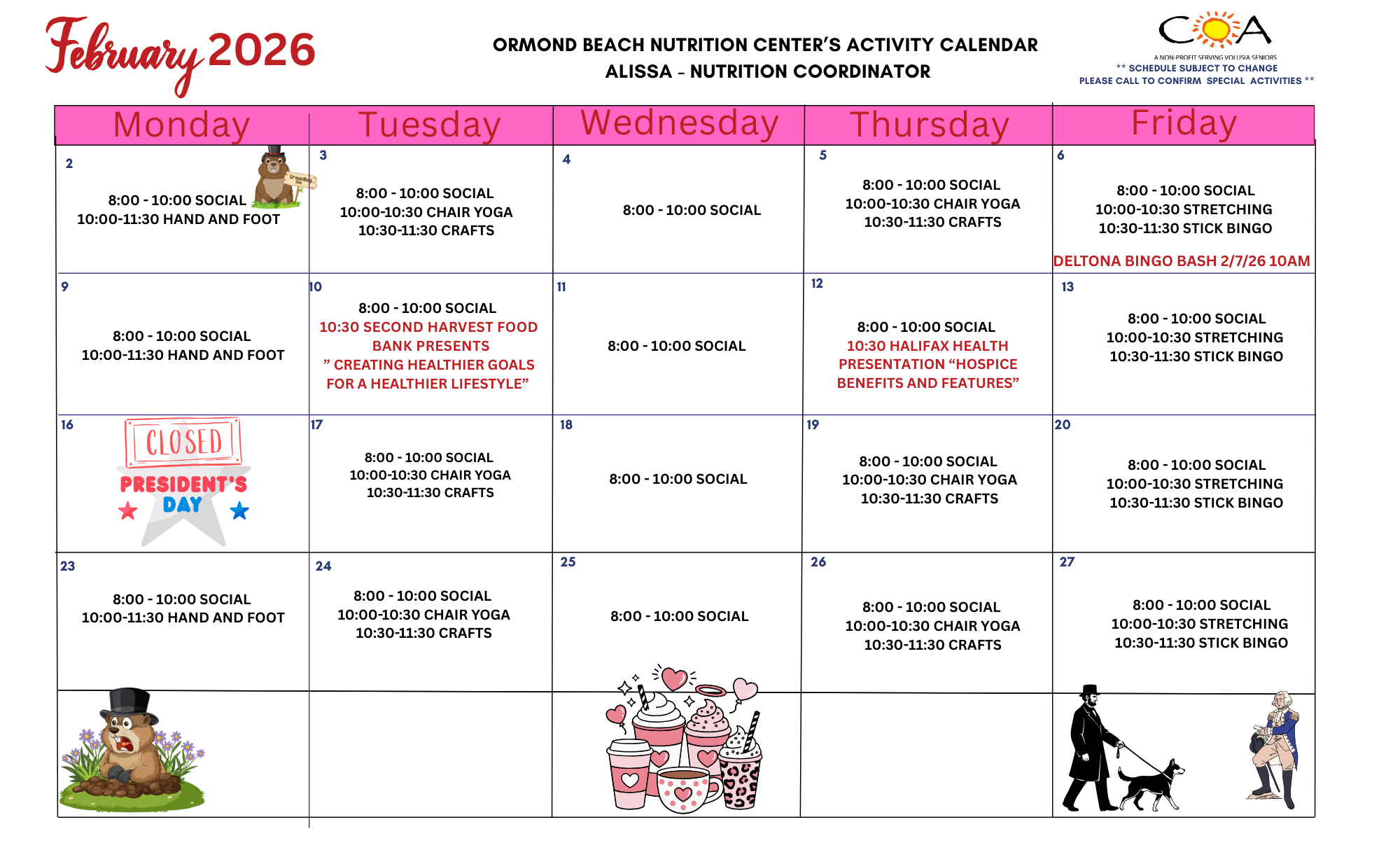 COA Ormond Beach Senior Center & Neighborhood Nutrition Center Calendar