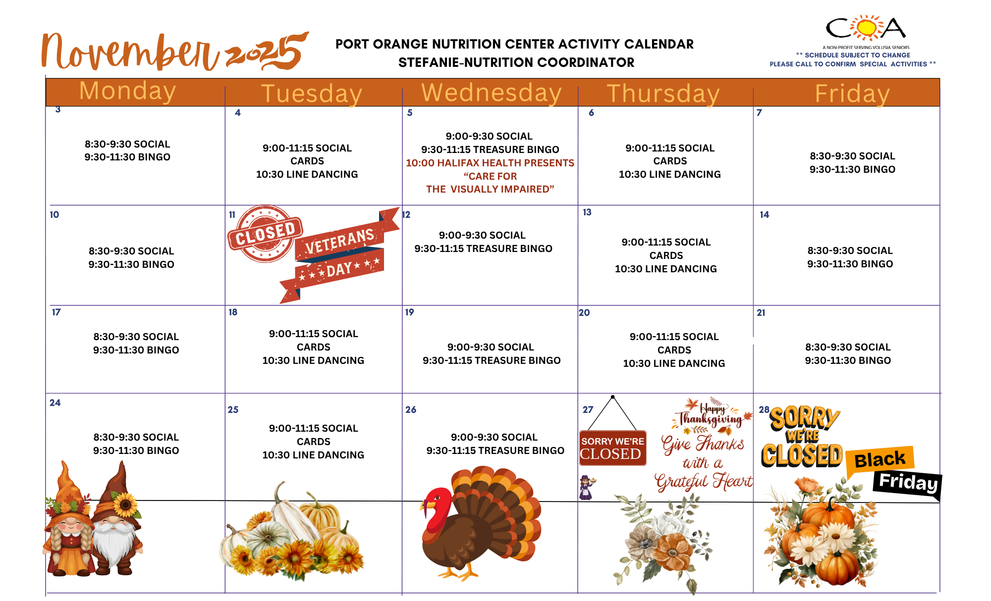 COA Port Orange Neighborhood Nutrition Center Calendar